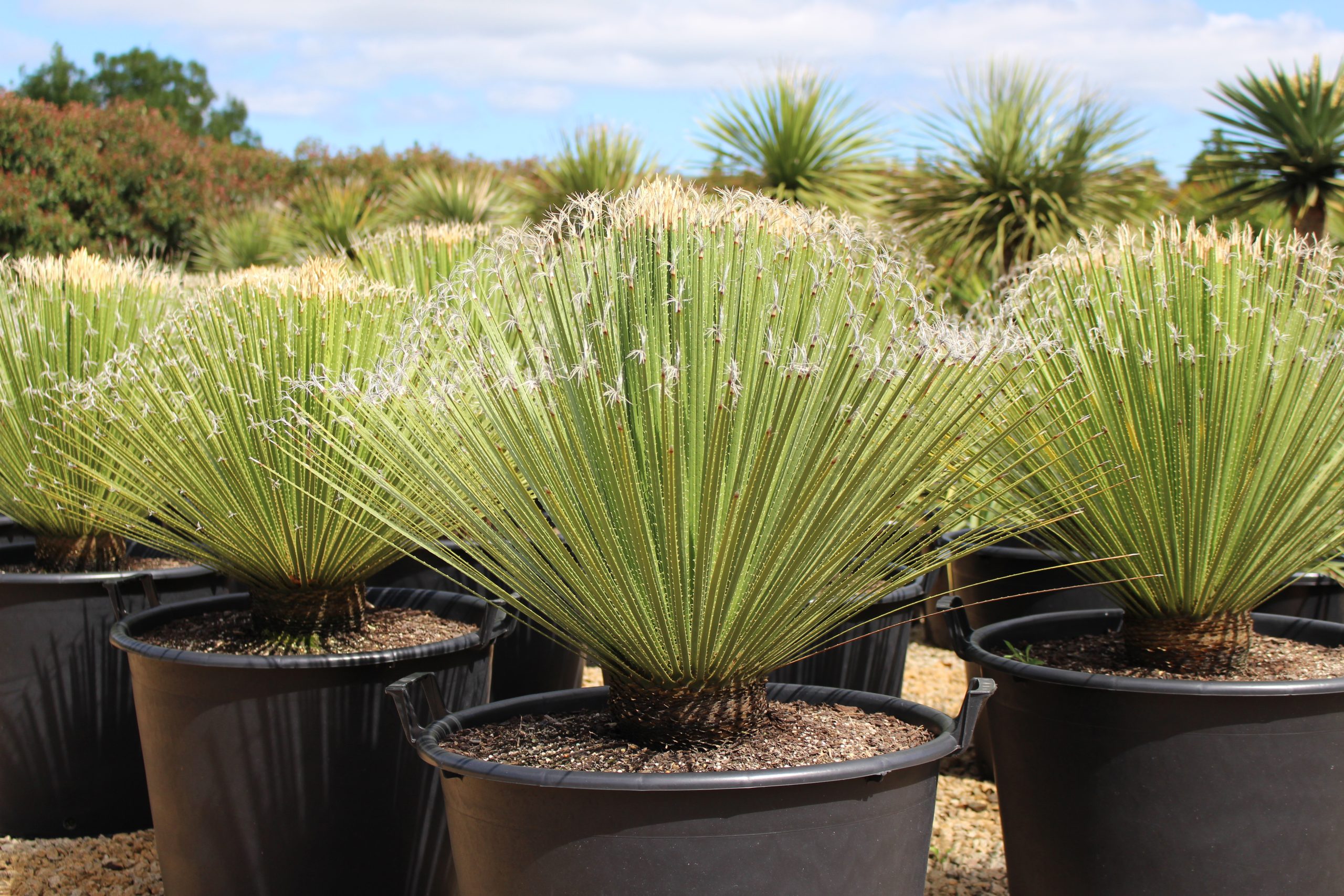 This aggressively stunning plant has hook-like spines running up and down the leaf margins tipped with eye-catching flared tufts. It forms a mushroom shape that is fantastic for large pots or any garden setting.